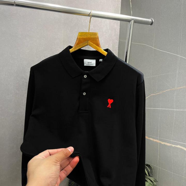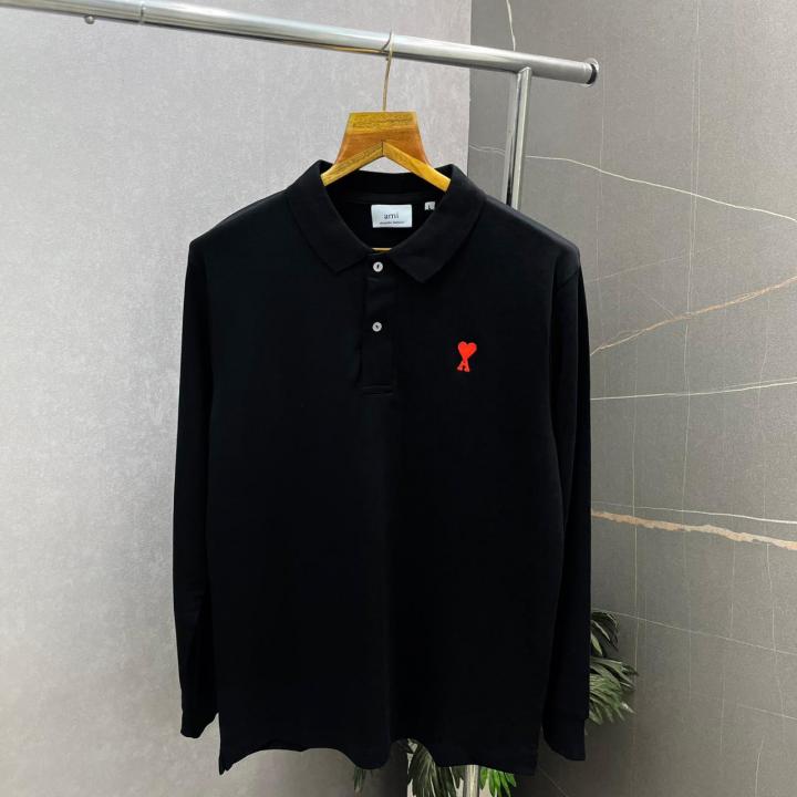 Home T-Shirts Ami Paris Black Premium Polo Full Sleeves Tshirt 492