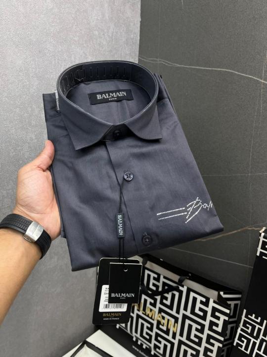 Home Shirts Balmai_n Dark Grey Premium Shirt With Brand Box & Carry Bag 483