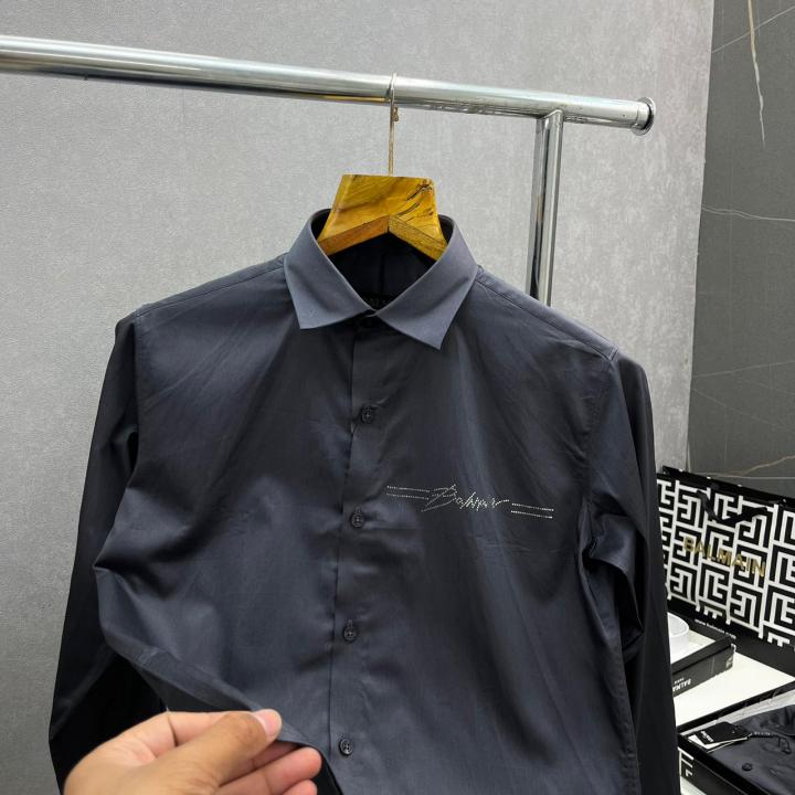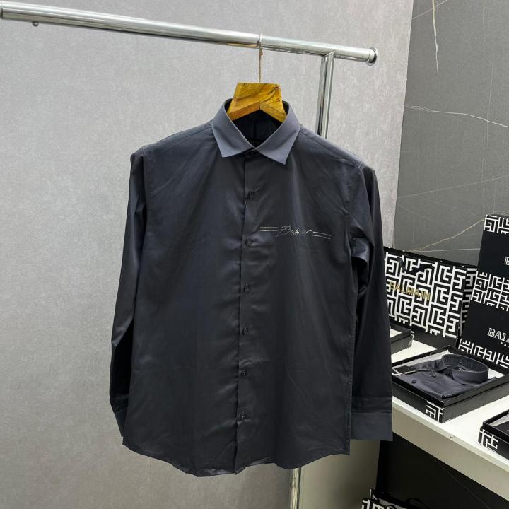 Balmai_n Dark Grey Premium Shirt With Brand Box & Carry Bag 483