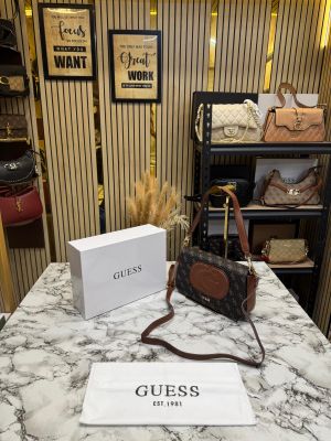 Guess Womens Eco Mietta Flap Shoulder Bag With Box And Dust Bag (Brown)
