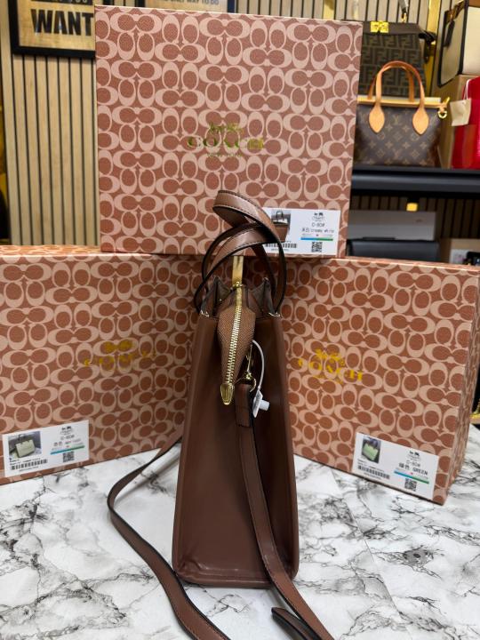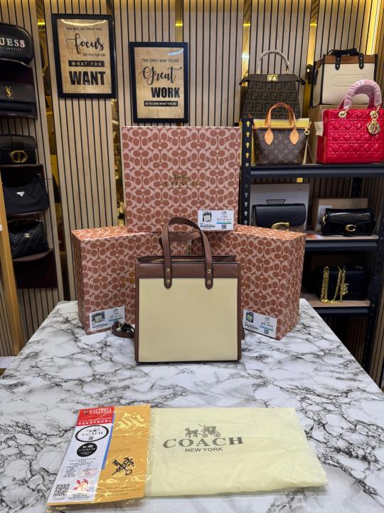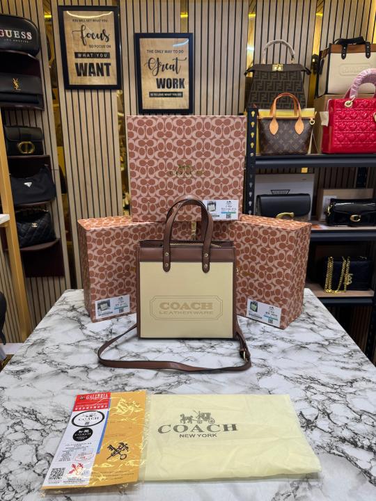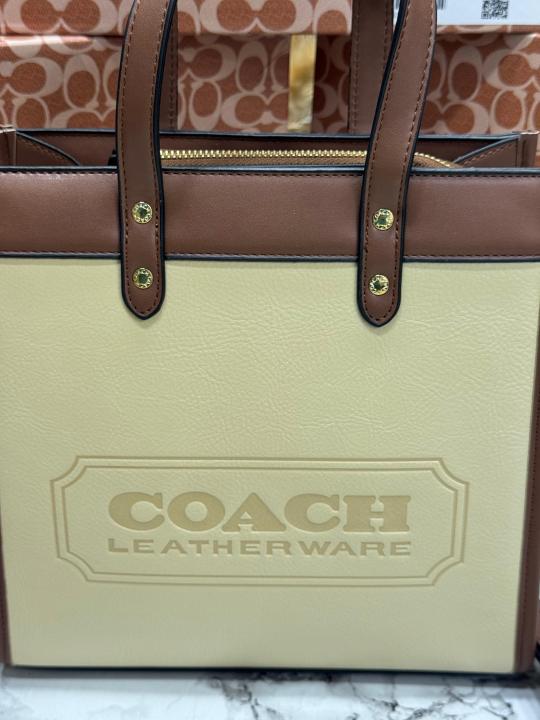 Coac_h Field Tote Mini Leatherware Print Colorblock Leather Crossbody Bag With Box And Dust Bag (C-80)(Apricot)
