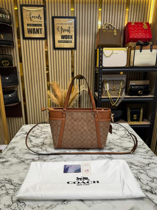 Coac_h Juliet Signature Canvas Da Tote Bag With Dust Bag (Brown-8382)