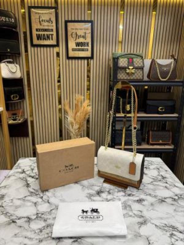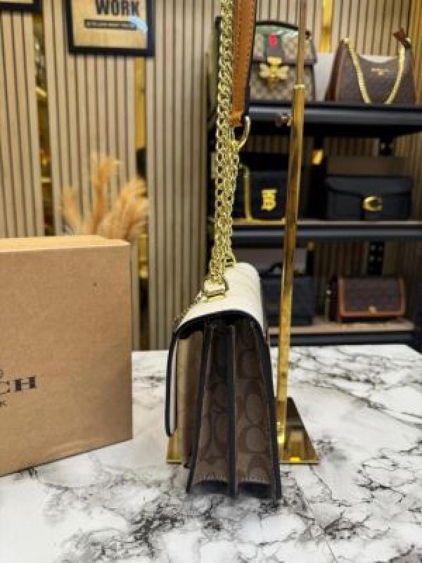 COAC_H KLARE CROSSBODY IN BLOCKED SIGNATURE CANVAS WITH OG BOX AND DUST BAG PREMIUM QUALITY (BLACK)