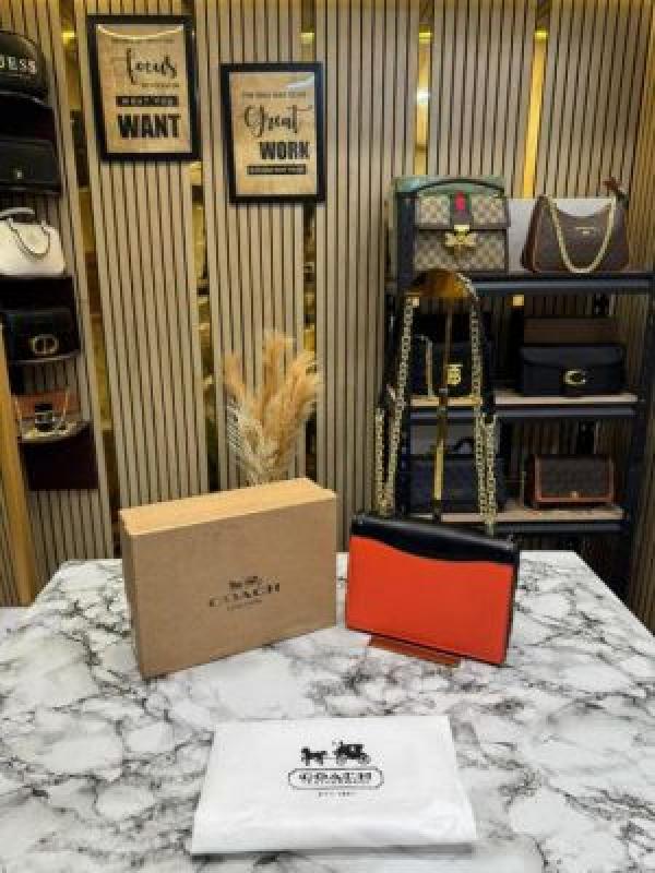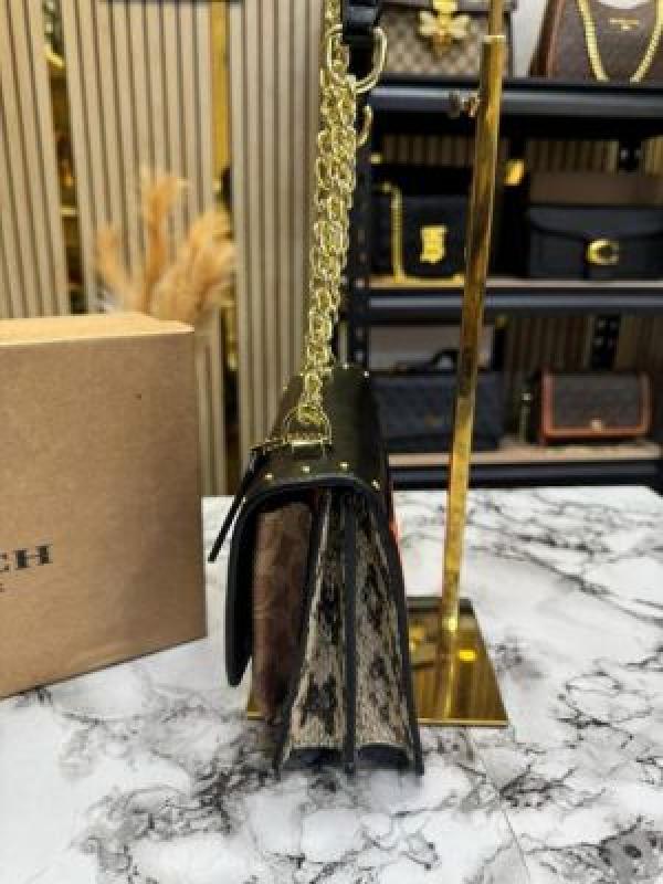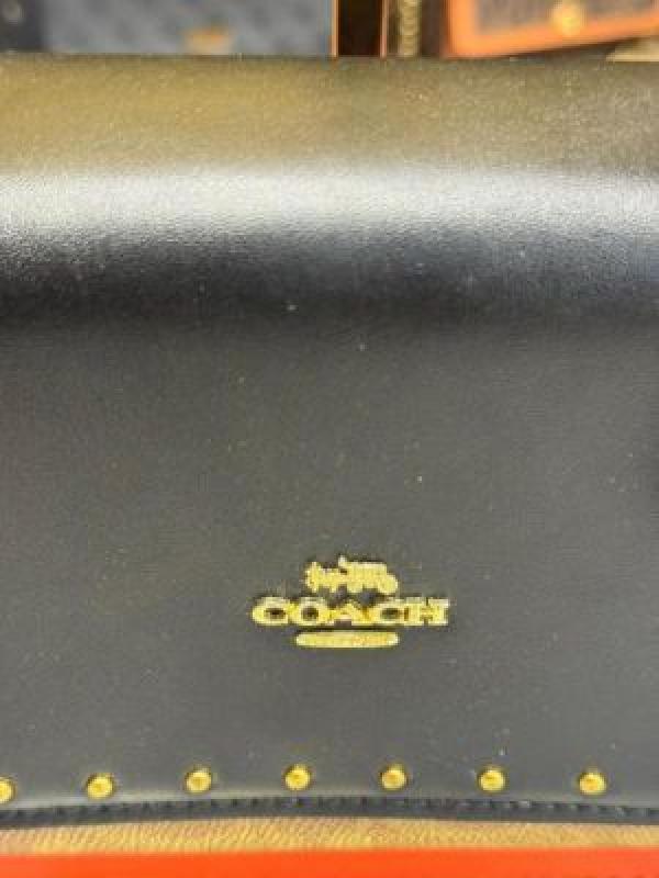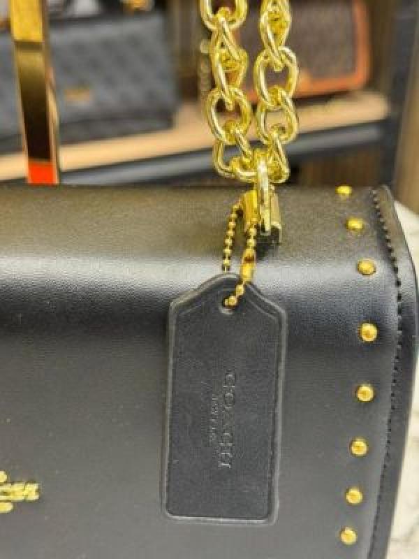 COAC_H KLARE CROSSBODY SIGNATURE CANVAS WITH RIVETS OG BOX AND DUST BAG PREMIUM QUALITY (BLACK) (V-4322)