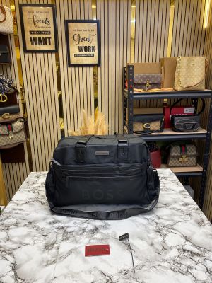 Hugo_boss logo travel duffle bag with adjustable shoulder strap (black) (29017-b)