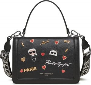 Karl Lagerfeld Maybelle Crossbody Bag Signature & Patches Work With Box And Dust Bag (Black)