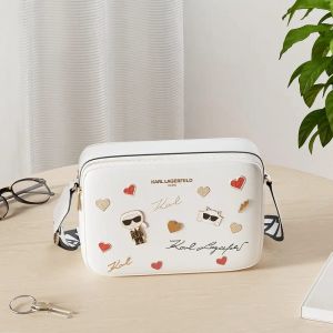 Karl Lagerfeld Maybelle Crossbody Bag Signature & Patches Work With Box And Dust Bag (White)