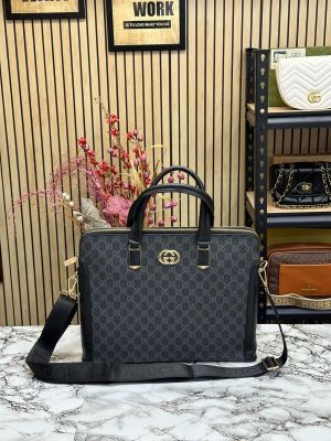 Gucc_i Premium Quality GG Logo Laptop Bag Printed With Strap (BLACK G2050-5)