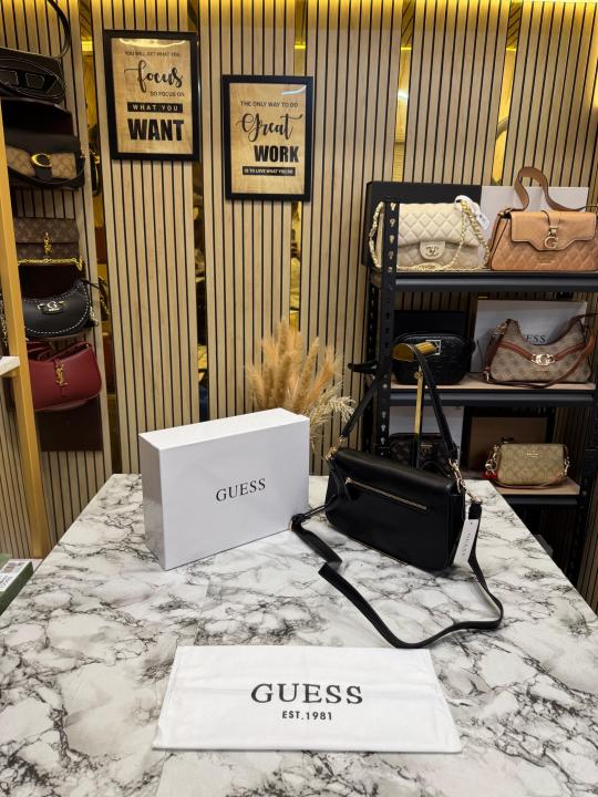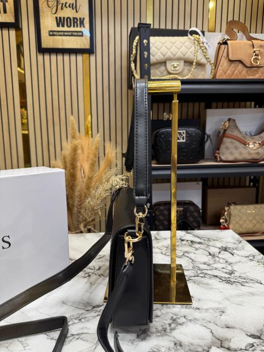 Guess Womens Eco Mietta Flap Shoulder Bag With Box And Dust Bag (Black)