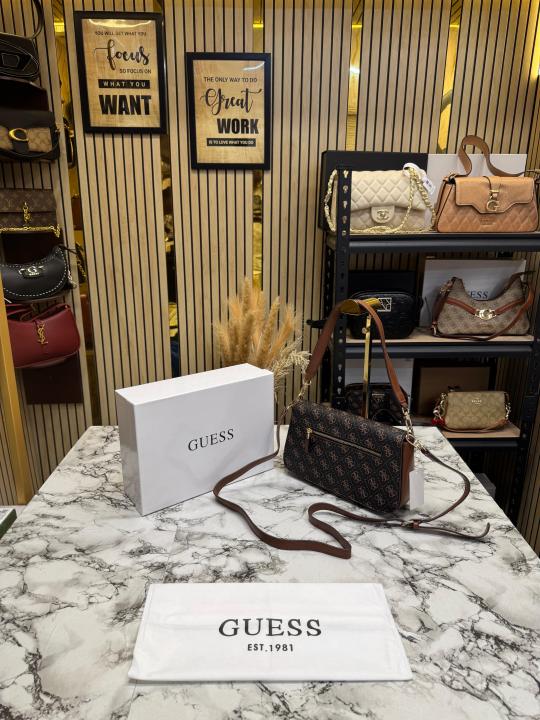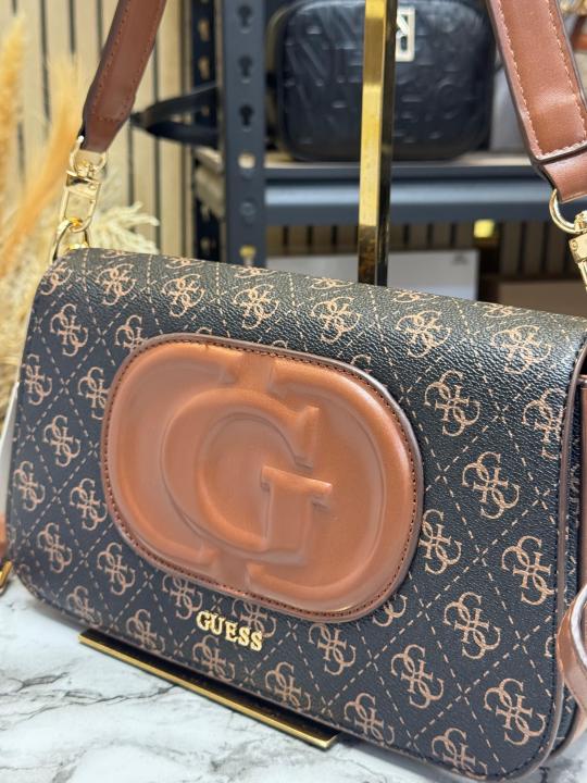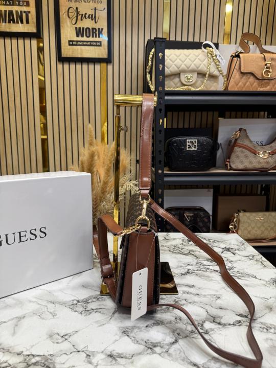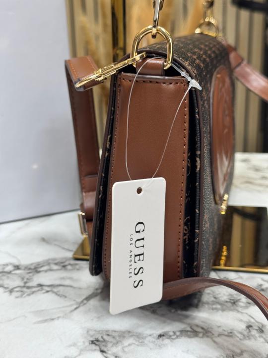 Guess Womens Eco Mietta Flap Shoulder Bag With Box And Dust Bag (Brown)