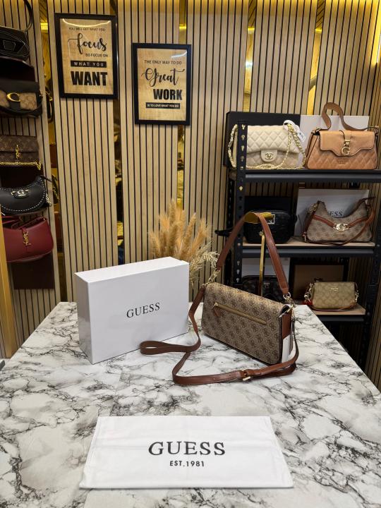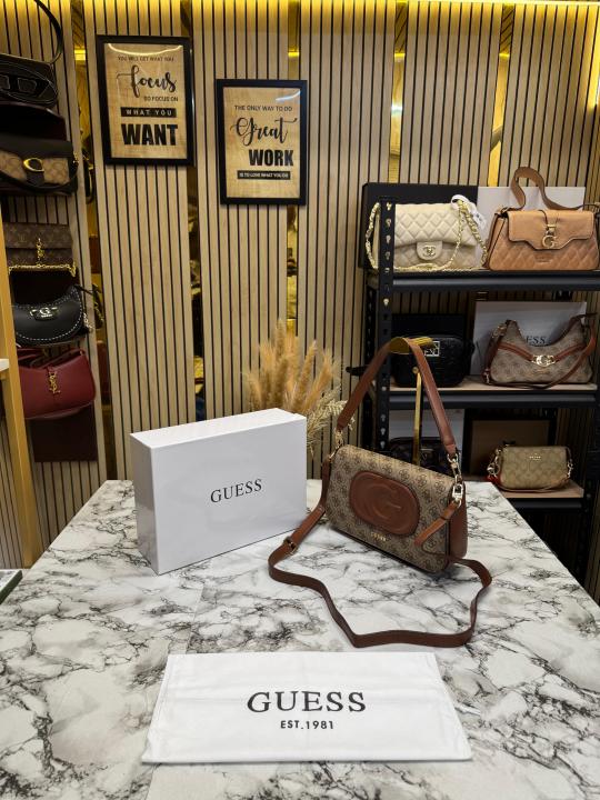 Guess Womens Eco Mietta Flap Shoulder Bag With Box And Dust Bag (Khaki)