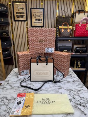 Coac_h Field Tote Mini Leatherware Print Colorblock Leather Crossbody Bag With Box And Dust Bag (C-80)(Apricot)