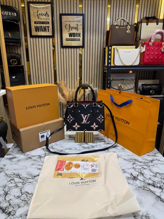 Louis_Vuitton PM Onthego Monogram Premium Quality Tote Bag With Double Box And Dust Bag Including Carry Bag (Black)(M45595)