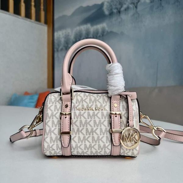 Michael_Kors Bedford Legacy Extra-Small Logo Duffle Crossbody Bag in Pink Logo-print Canvas With Acorn Leather (1712)