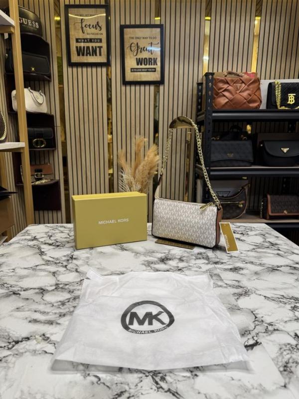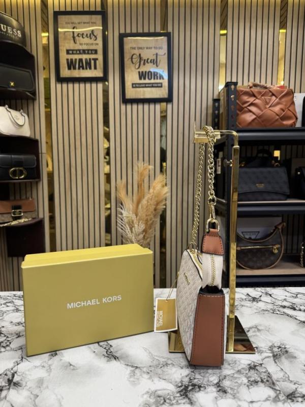 MICHAEL_KORS JET SET LEATHER POUCHETTE WITH OG BOX AND DUST BAG (1930-BEIGE)