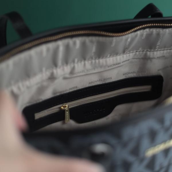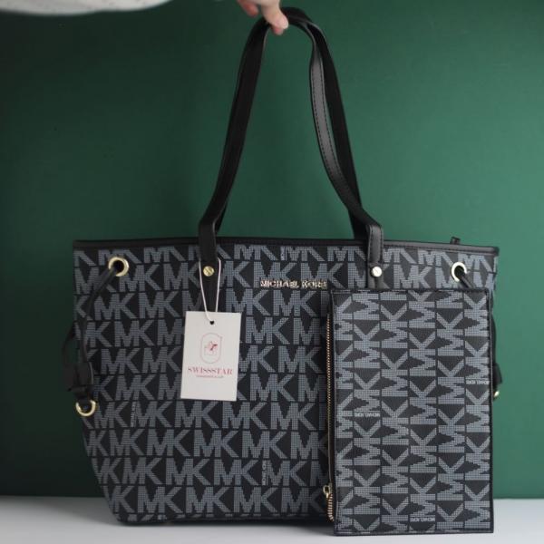 Michael_Kors Large Jet Set Big Mk Print Tote Bag With Dust Bag (2003-Black)