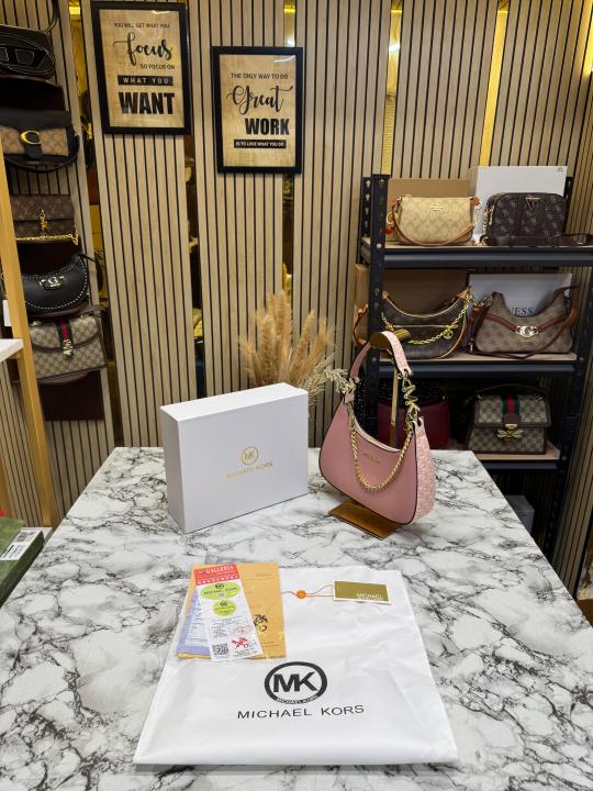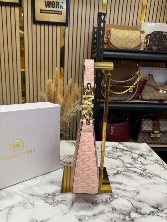 Michael_Kors Signature Chain Shoulder Bag With Leather Trim (Pink)(62306)