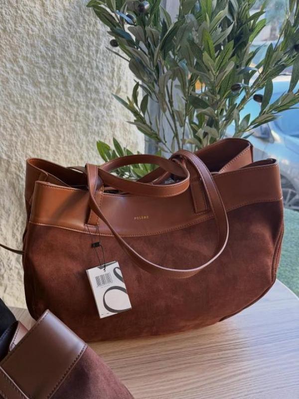 Polene Cyme Dual-Texture Leather Shoulder Bag With Dust Bag (Brown)
